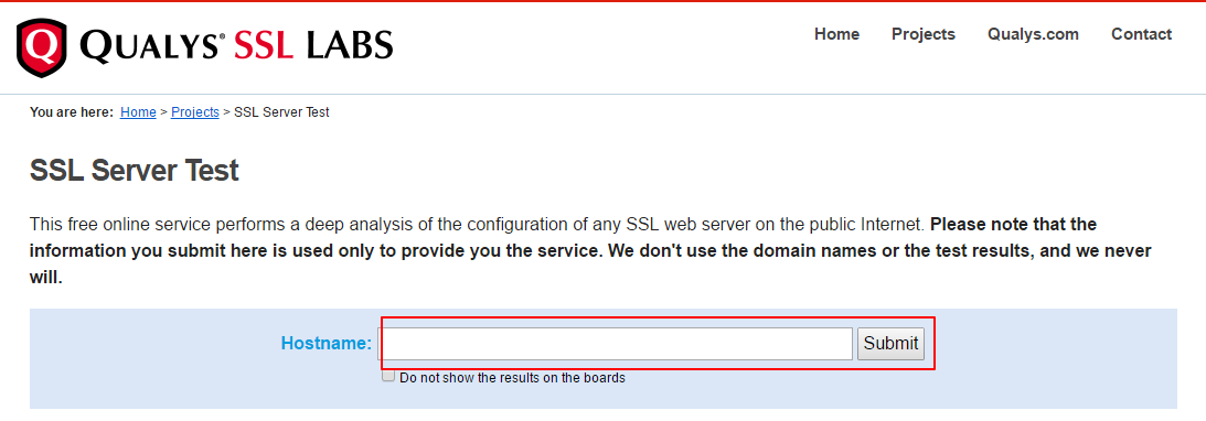一般来说,按照以上步骤操作完成,V2Ray 客户端能够正常联网说明 TLS 已经成功启用。但要是有个可靠的方法来验证是否正常开启 TLS 无疑更令人放心。 验证的方法有很多,我仅介绍一种小白化一点的,便是 Qualys SSL Labs's SSL Server Test。